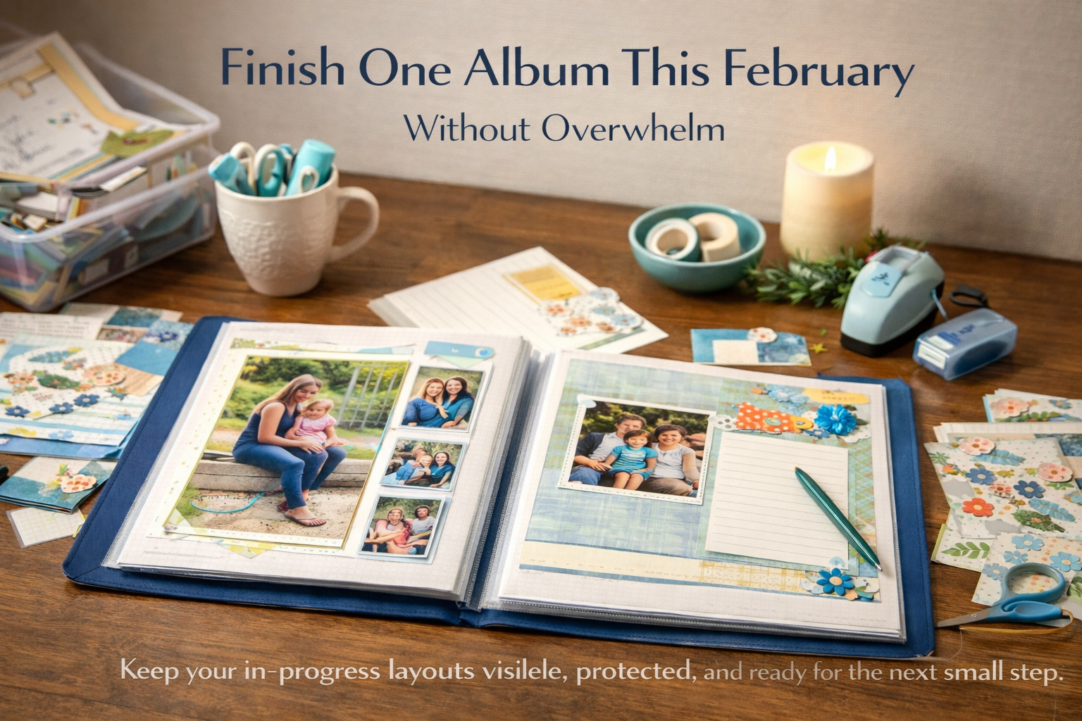 You’re not alone. Many scrapbookers have albums sitting on shelves, half-done spreads staring back, waiting for a “perfect moment” that never comes.